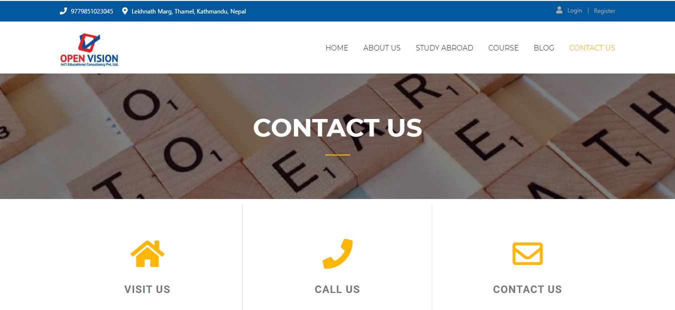 OPEN VISION EDUCATIONAL CONSULTANCY Published by author-test on March 4, 2020 OPEN VISION EDUCATIONAL CONSULTANCY | Lekhnath Marg, Thamel, Kathmandu, Nepal Visit Site Back To Portfolio Ready to work with omnibluetech ?| Get a Free Quote
